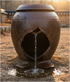 아랫부분이 깨져서 물이 새는 항아리에